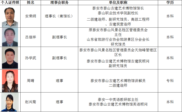 泰安市泰山古建艺术博物馆理事会组成人员名录