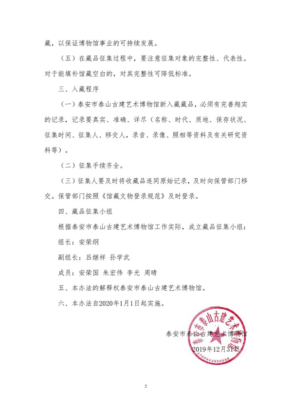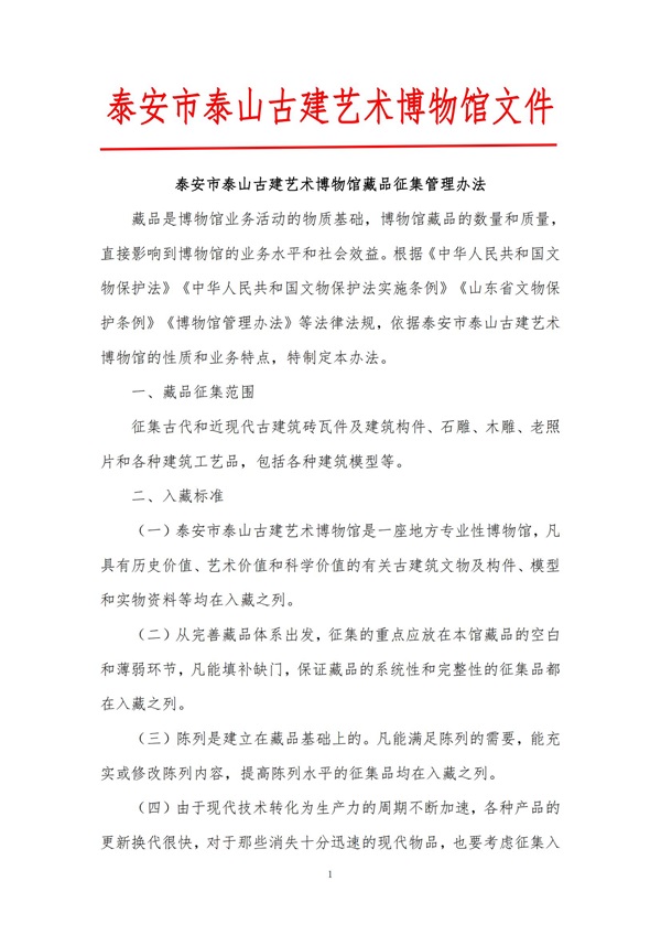 泰安市泰山古建艺术博物馆藏品征集管理办法