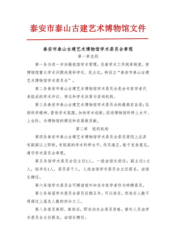 泰安市泰山古建艺术博物馆学术委员会章程