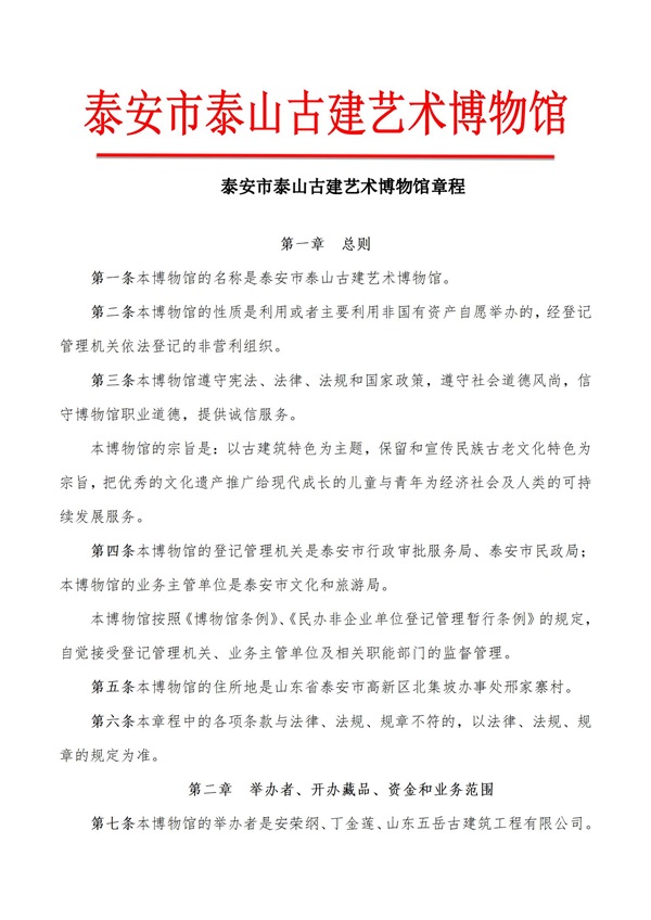 泰安市泰山古建艺术博物馆章程