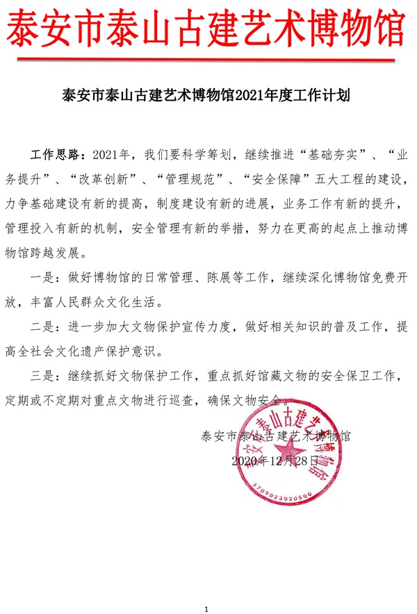 泰安市泰山古建艺术博物馆2021年度工作计划